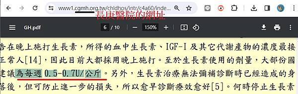 (三)在長庚兒童醫院兒童內分泌科羅福松醫師的「生長素的回顧與展望」一文中,指出「至於生長素使用的劑量,大部份國家建議為每週 0.5-0.7U/公斤」,以70KG體重的老鼠來換算,一周可施打的劑量約在35~49iu(For身高生長目的),也就是大概5~7iu/天。